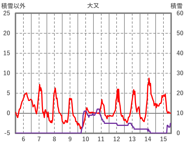 | 日 | 時 | 気温 | 降水 | 風向/風速 | 日照 | 積雪 | 降雪 |