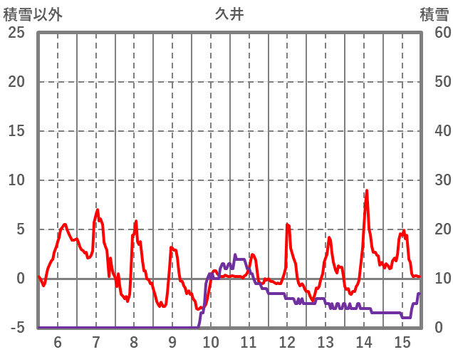 | 日 | 時 | 気温 | 降水 | 風向/風速 | 日照 | 積雪 | 降雪 |