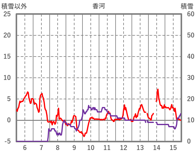 | 日 | 時 | 気温 | 降水 | 風向/風速 | 日照 | 積雪 | 降雪 |