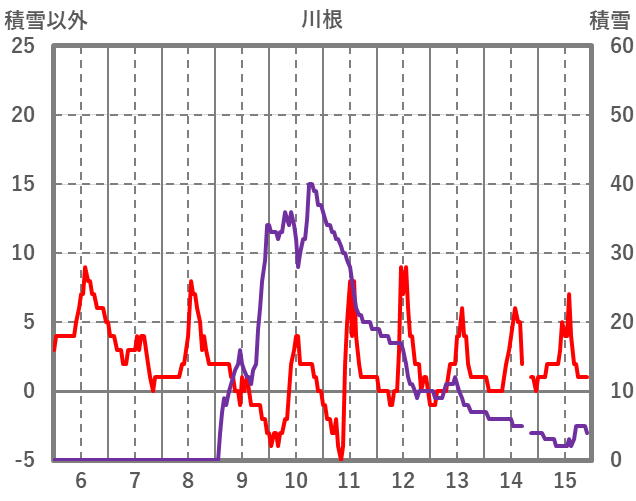 | 日 | 時 | 気温 | 降水 | 風向/風速 | 日照 | 積雪 | 降雪 |