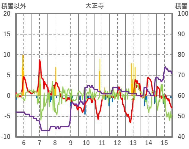 | 日 | 時 | 気温 | 降水 | 風向/風速 | 日照 | 積雪 | 降雪 |