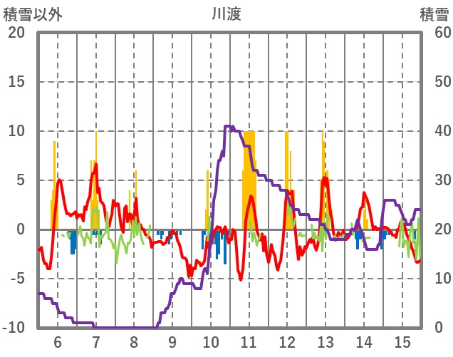| 日 | 時 | 気温 | 降水 | 風向/風速 | 日照 | 積雪 | 降雪 |