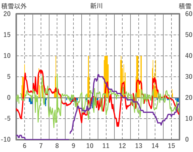 | 日 | 時 | 気温 | 降水 | 風向/風速 | 日照 | 積雪 | 降雪 |