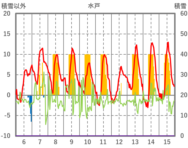 | 日 | 時 | 気温 | 降水 | 風向/風速 | 日照 | 積雪 | 降雪 |