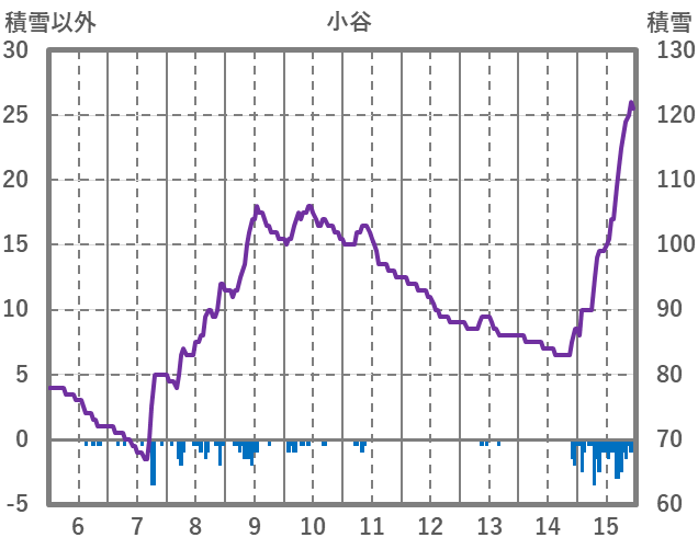 | 日 | 時 | 気温 | 降水 | 風向/風速 | 日照 | 積雪 | 降雪 |