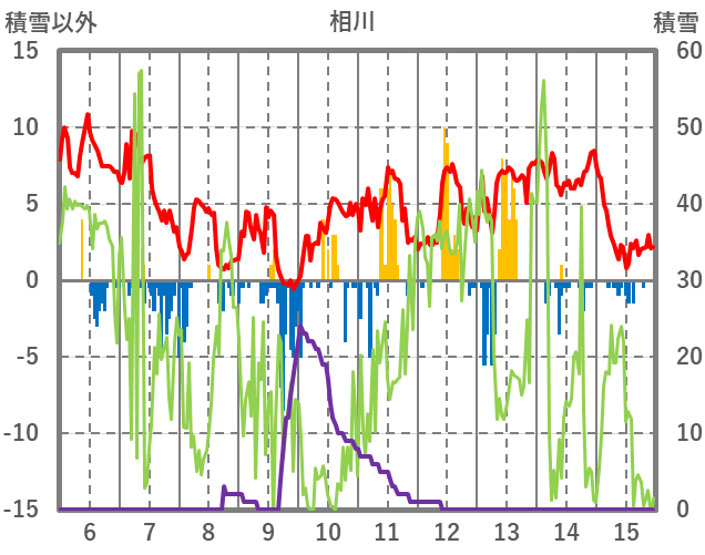 | 日 | 時 | 気温 | 降水 | 風向/風速 | 日照 | 積雪 | 降雪 |