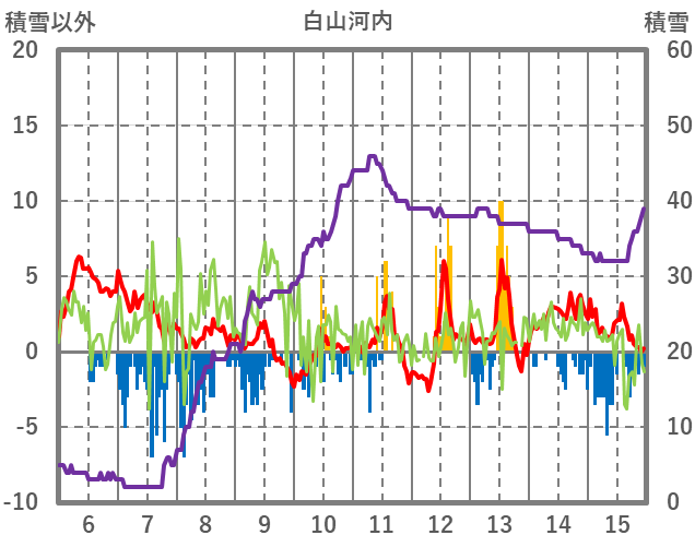 | 日 | 時 | 気温 | 降水 | 風向/風速 | 日照 | 積雪 | 降雪 |