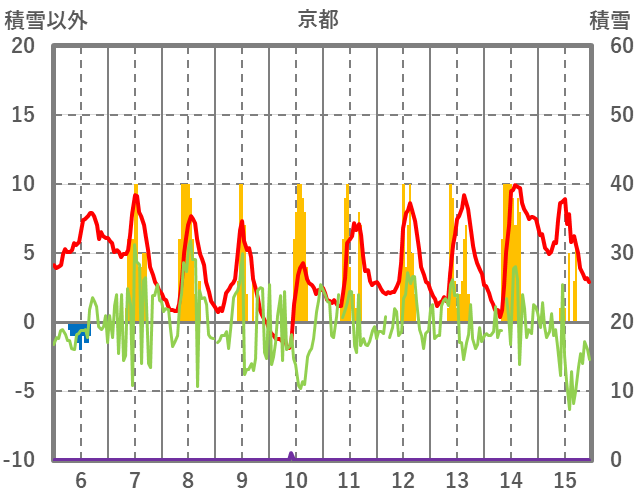 | 日 | 時 | 気温 | 降水 | 風向/風速 | 日照 | 積雪 | 降雪 |