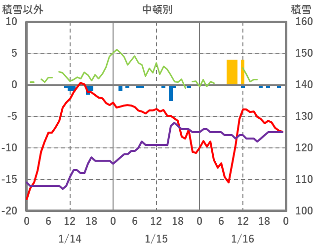 | 日 | 時 | 気温 | 降水 | 風向/風速 | 日照 | 積雪 | 降雪 |