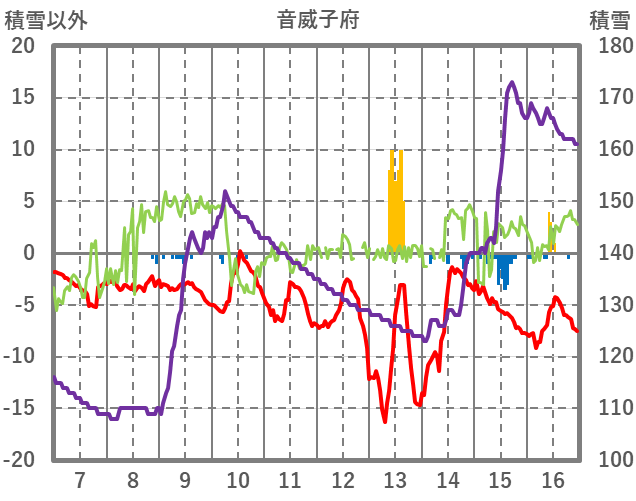 | 日 | 時 | 気温 | 降水 | 風向/風速 | 日照 | 積雪 | 降雪 |