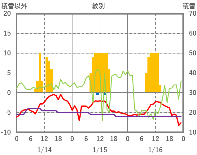 | 日 | 時 | 気温 | 降水 | 風向/風速 | 日照 | 積雪 | 降雪 |