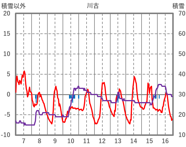 | 日 | 時 | 気温 | 降水 | 風向/風速 | 日照 | 積雪 | 降雪 |