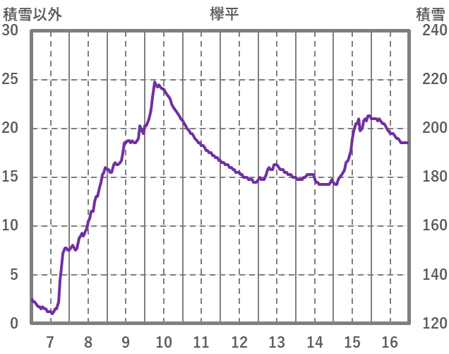 | 日 | 時 | 気温 | 降水 | 風向/風速 | 日照 | 積雪 | 降雪 |