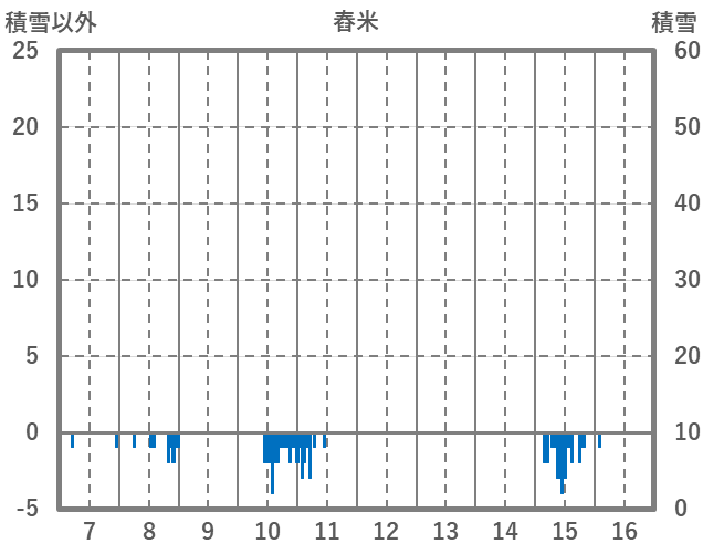 | 日 | 時 | 気温 | 降水 | 風向/風速 | 日照 | 積雪 | 降雪 |