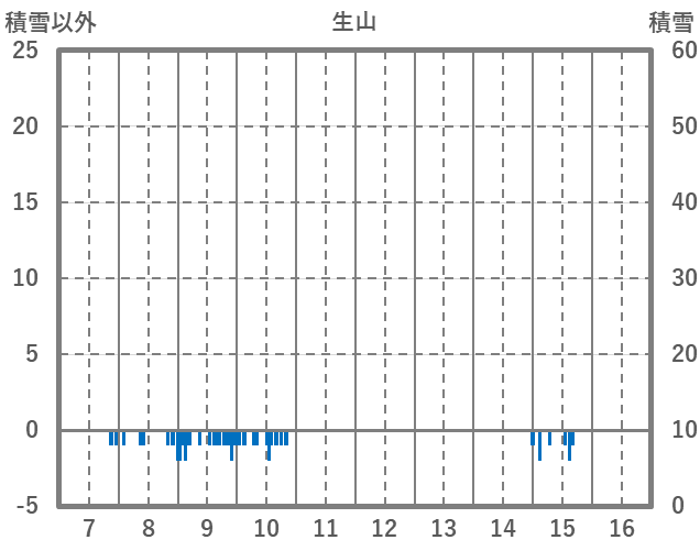 | 日 | 時 | 気温 | 降水 | 風向/風速 | 日照 | 積雪 | 降雪 |