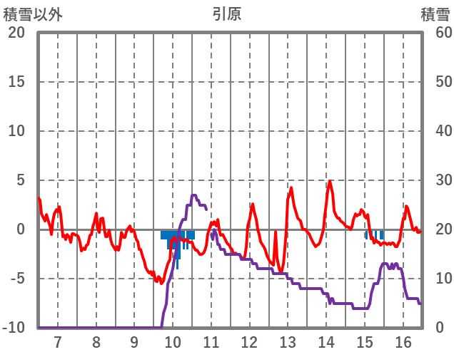 | 日 | 時 | 気温 | 降水 | 風向/風速 | 日照 | 積雪 | 降雪 |