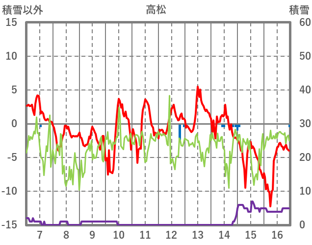 | 日 | 時 | 気温 | 降水 | 風向/風速 | 日照 | 積雪 | 降雪 |