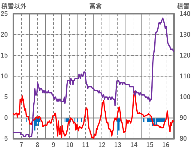 | 日 | 時 | 気温 | 降水 | 風向/風速 | 日照 | 積雪 | 降雪 |