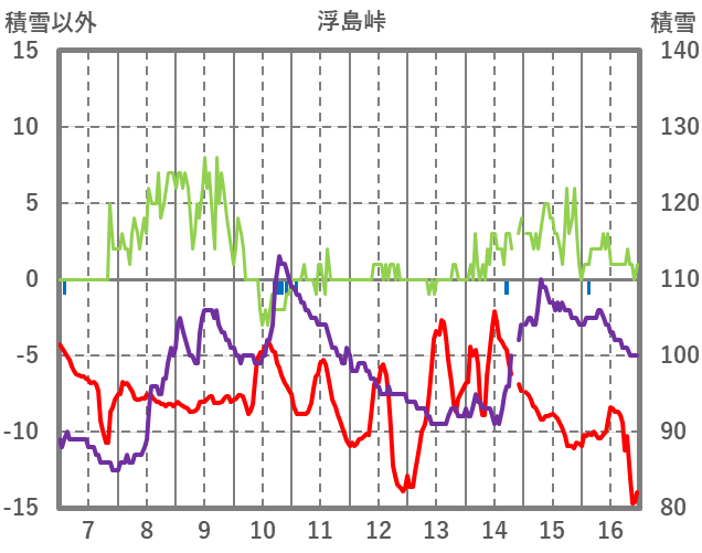 | 日 | 時 | 気温 | 降水 | 風向/風速 | 日照 | 積雪 | 降雪 |