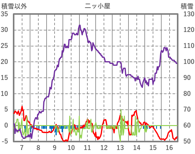 | 日 | 時 | 気温 | 降水 | 風向/風速 | 日照 | 積雪 | 降雪 |