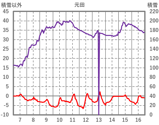 | 日 | 時 | 気温 | 降水 | 風向/風速 | 日照 | 積雪 | 降雪 |