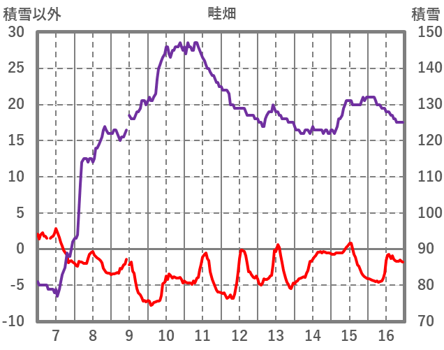 | 日 | 時 | 気温 | 降水 | 風向/風速 | 日照 | 積雪 | 降雪 |