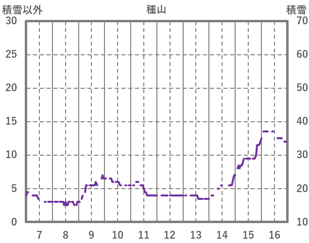 | 日 | 時 | 気温 | 降水 | 風向/風速 | 日照 | 積雪 | 降雪 |