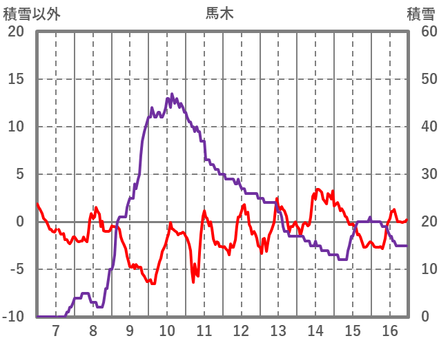 | 日 | 時 | 気温 | 降水 | 風向/風速 | 日照 | 積雪 | 降雪 |