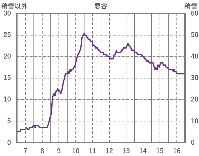 | 日 | 時 | 気温 | 降水 | 風向/風速 | 日照 | 積雪 | 降雪 |