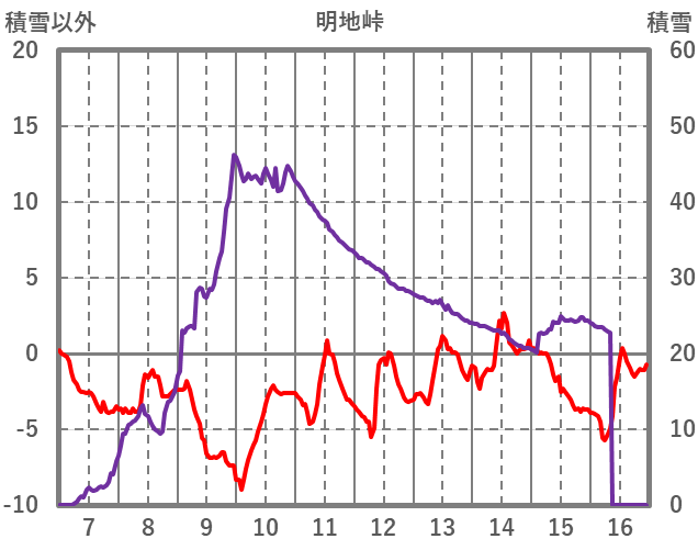 | 日 | 時 | 気温 | 降水 | 風向/風速 | 日照 | 積雪 | 降雪 |