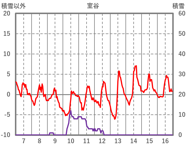 | 日 | 時 | 気温 | 降水 | 風向/風速 | 日照 | 積雪 | 降雪 |