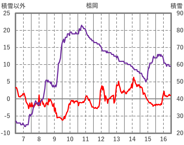 | 日 | 時 | 気温 | 降水 | 風向/風速 | 日照 | 積雪 | 降雪 |
