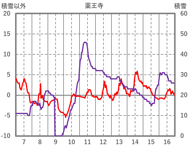 | 日 | 時 | 気温 | 降水 | 風向/風速 | 日照 | 積雪 | 降雪 |