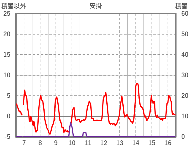 | 日 | 時 | 気温 | 降水 | 風向/風速 | 日照 | 積雪 | 降雪 |