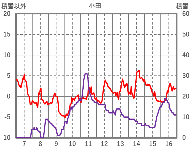 | 日 | 時 | 気温 | 降水 | 風向/風速 | 日照 | 積雪 | 降雪 |