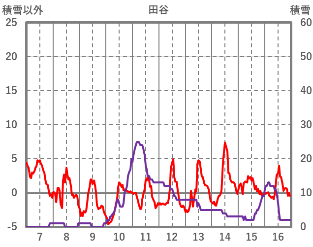 | 日 | 時 | 気温 | 降水 | 風向/風速 | 日照 | 積雪 | 降雪 |