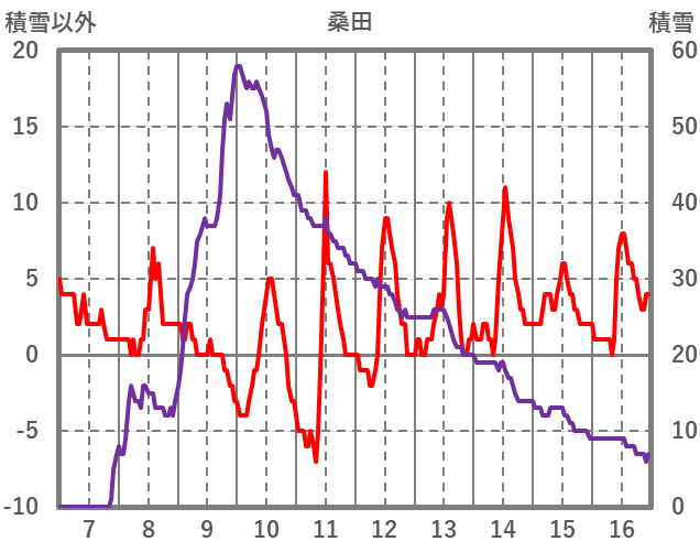 | 日 | 時 | 気温 | 降水 | 風向/風速 | 日照 | 積雪 | 降雪 |