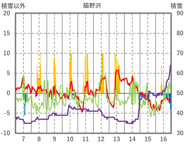 | 日 | 時 | 気温 | 降水 | 風向/風速 | 日照 | 積雪 | 降雪 |