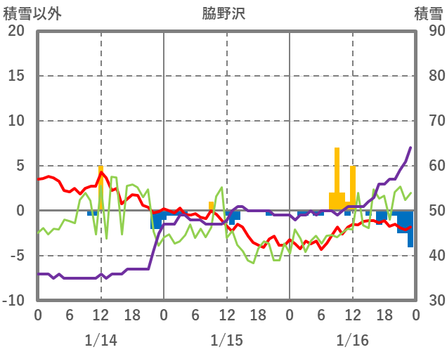 | 日 | 時 | 気温 | 降水 | 風向/風速 | 日照 | 積雪 | 降雪 |