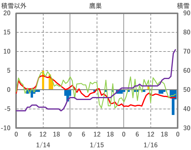 | 日 | 時 | 気温 | 降水 | 風向/風速 | 日照 | 積雪 | 降雪 |