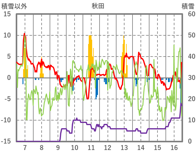 | 日 | 時 | 気温 | 降水 | 風向/風速 | 日照 | 積雪 | 降雪 |