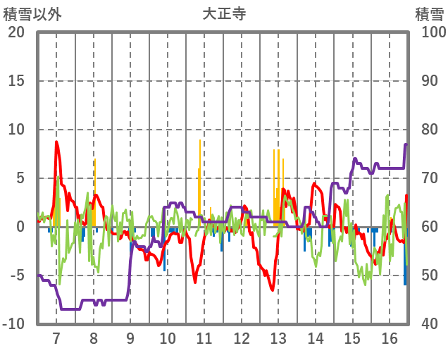 | 日 | 時 | 気温 | 降水 | 風向/風速 | 日照 | 積雪 | 降雪 |