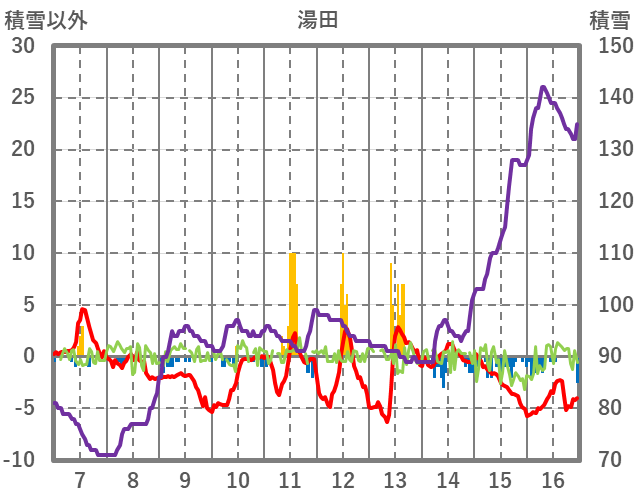 | 日 | 時 | 気温 | 降水 | 風向/風速 | 日照 | 積雪 | 降雪 |