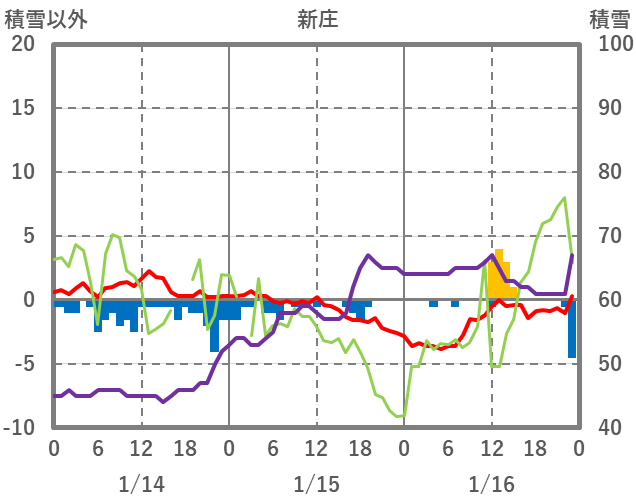 | 日 | 時 | 気温 | 降水 | 風向/風速 | 日照 | 積雪 | 降雪 |