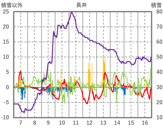 | 日 | 時 | 気温 | 降水 | 風向/風速 | 日照 | 積雪 | 降雪 |