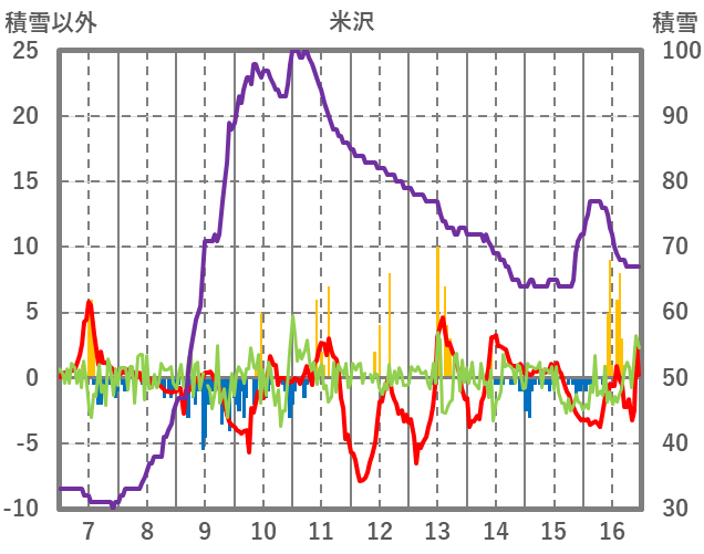 | 日 | 時 | 気温 | 降水 | 風向/風速 | 日照 | 積雪 | 降雪 |