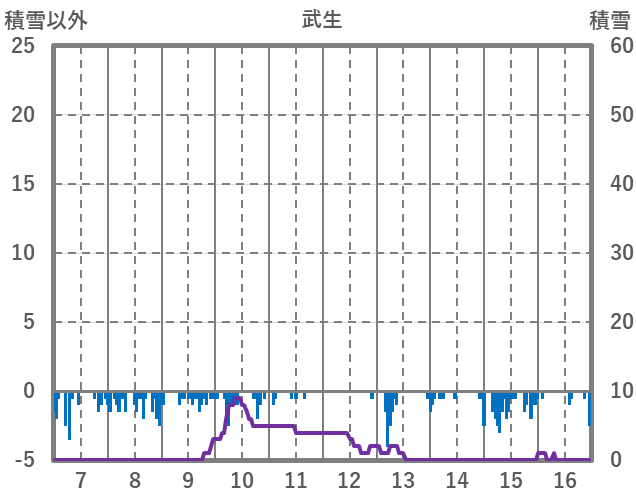 | 日 | 時 | 気温 | 降水 | 風向/風速 | 日照 | 積雪 | 降雪 |