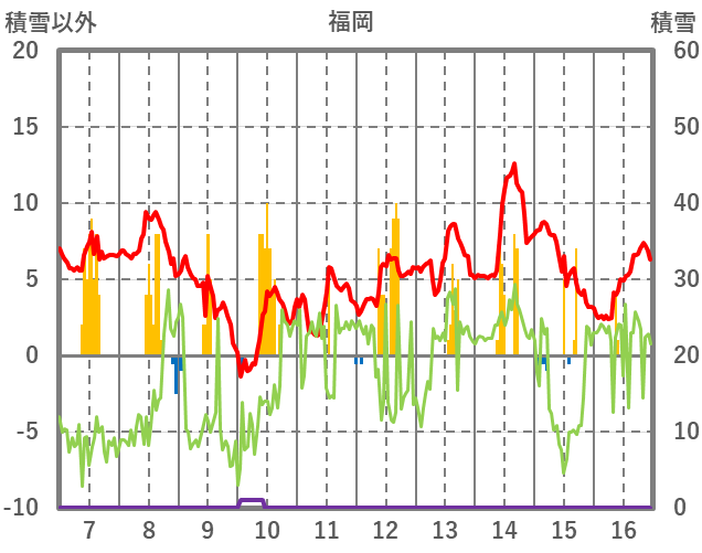 | 日 | 時 | 気温 | 降水 | 風向/風速 | 日照 | 積雪 | 降雪 |