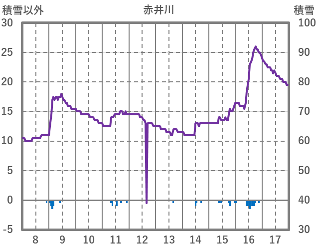 | 日 | 時 | 気温 | 降水 | 風向/風速 | 日照 | 積雪 | 降雪 |