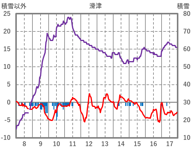 | 日 | 時 | 気温 | 降水 | 風向/風速 | 日照 | 積雪 | 降雪 |